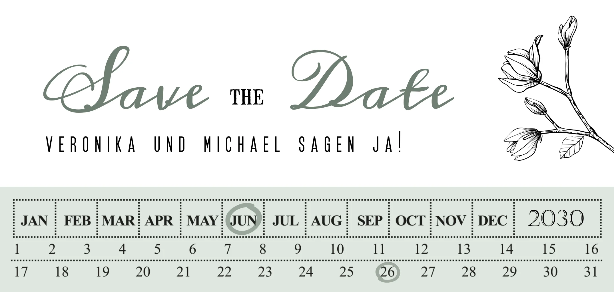 Save the date Karte mit Kalender und hellgrünem Streifen