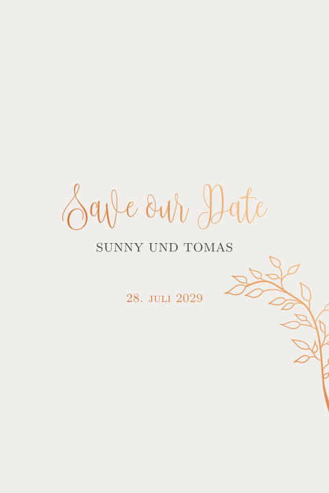 Save the date Karte mit Roségoldfolie auf Leinenhintergrund. Ihr könnt diese Karte leicht selbst bearbeiten.Bei quadratische Karten fällt ggf. ein anderes Briefporto an. Alle Infos findest du auf der Website der Deutschen Post. Zu diesem Format erhältst du Umschläge in der Größe 14x12,5 cm. Format ändern ist möglich.