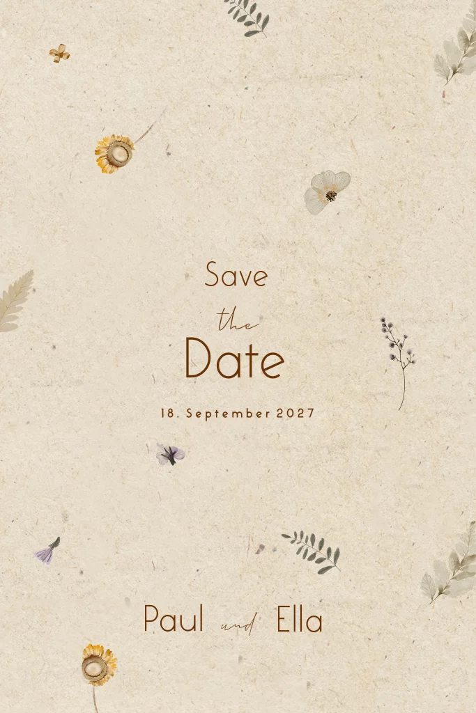Save-the-date-Karte mit nachhaltigen Look mit zarten Trockenblumen