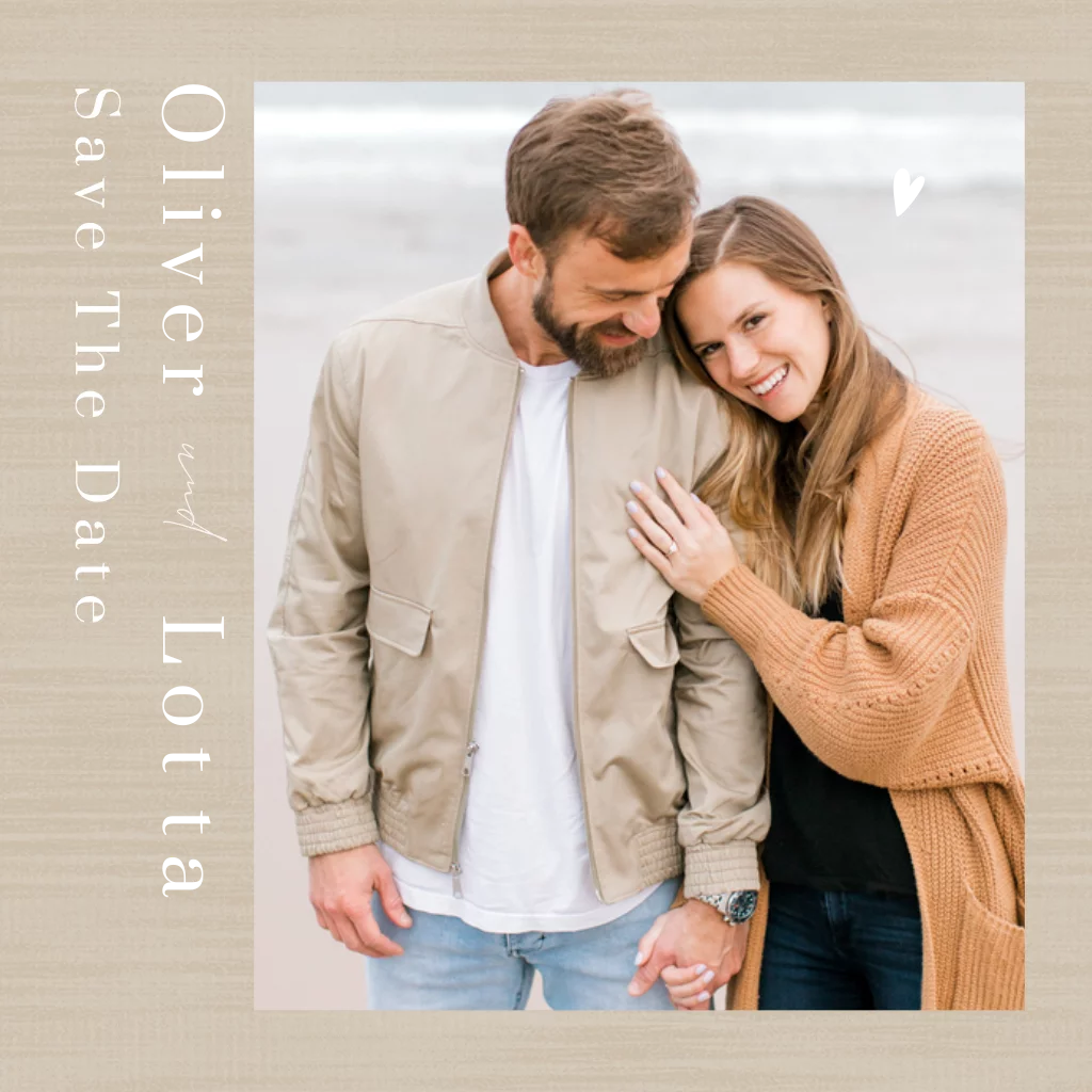 Save the Date-Karte mit Textur, Foto und FoliendruckDas Design der von dir gewählten Karte wurde automatisch in andere Formate umgestellt. Wähle einfach deinen Wunschformat aus und platziere alle Texte und Elemente an der richtigen Stelle im Editor. Du hast Fragen oder dein Favorit steht nicht zur Auswahl? Dann kontaktiere uns bitte und wir werden uns gemeinsam darum kümmern!