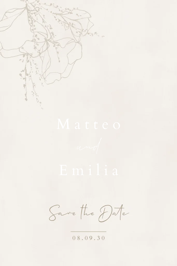 Save-the-date-Karte mit umrissenen Zweigen und RoségoldfolieMelde dich für unseren Newsletter an und profitiere von exklusiven Angeboten, kreativen Ideen und Neuigkeiten aus unserer Produktwelt. Als Dankeschön für deine Anmeldung schenken wir dir einen kostenlosen Probedruck deiner Karte.