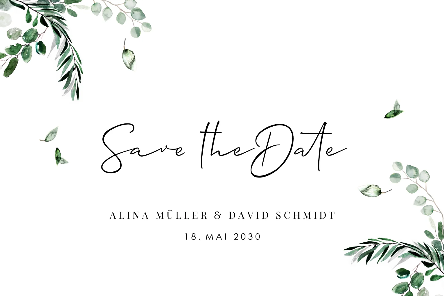 Save the Date Karte mit Zweigen und Blättern