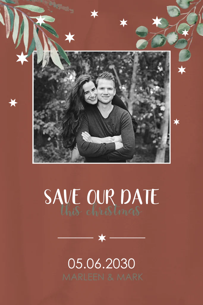 Save the Date-Weihnachtskarte in Braun mit Foto und schicker Goldfolie