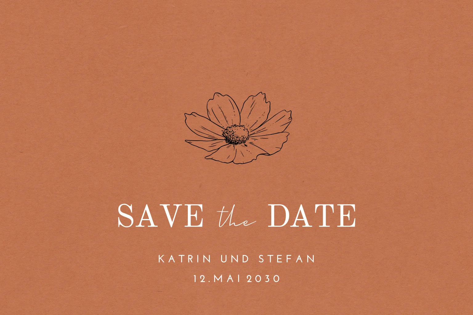 Schlichte Save the date Karte mit Gänseblümchen auf orange