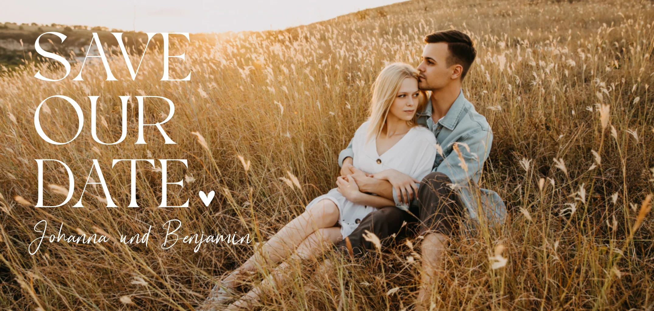 Romantische Save-the-Date-Karte im Feld-Design, personalisieren Sie sie in unserem Editor.