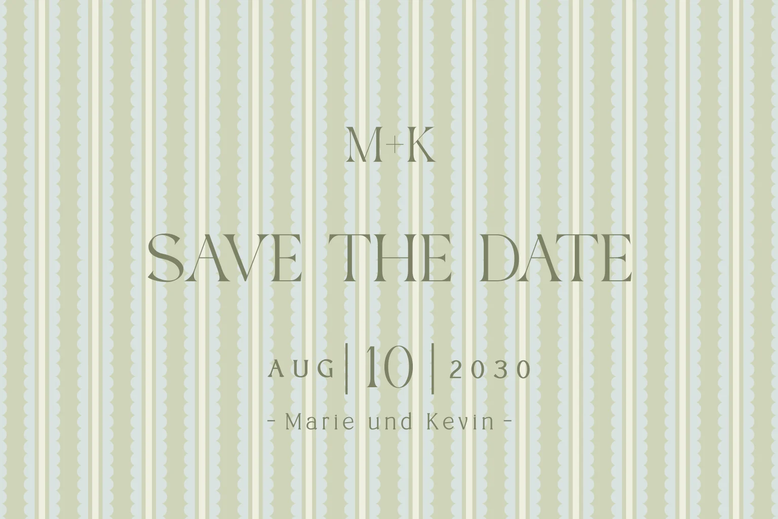 Stilvolle Save the Date Karte in Grün mit Streifenmuster