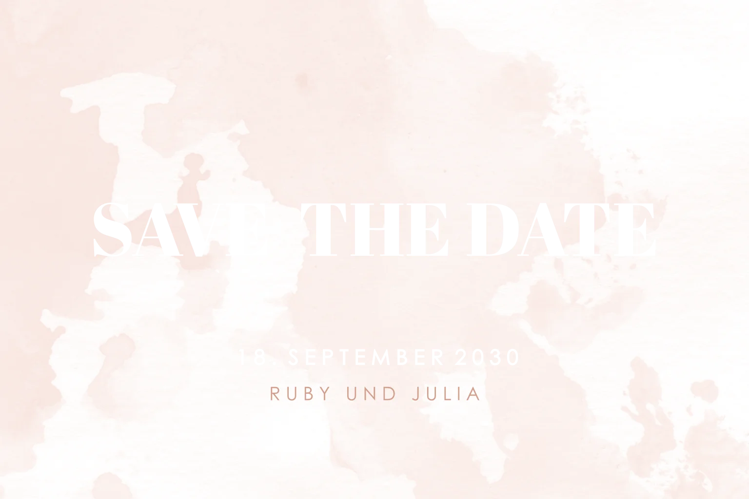 Stilvolle Save the date Karte mit rosa Aquarellfarbe und Roségoldfolie