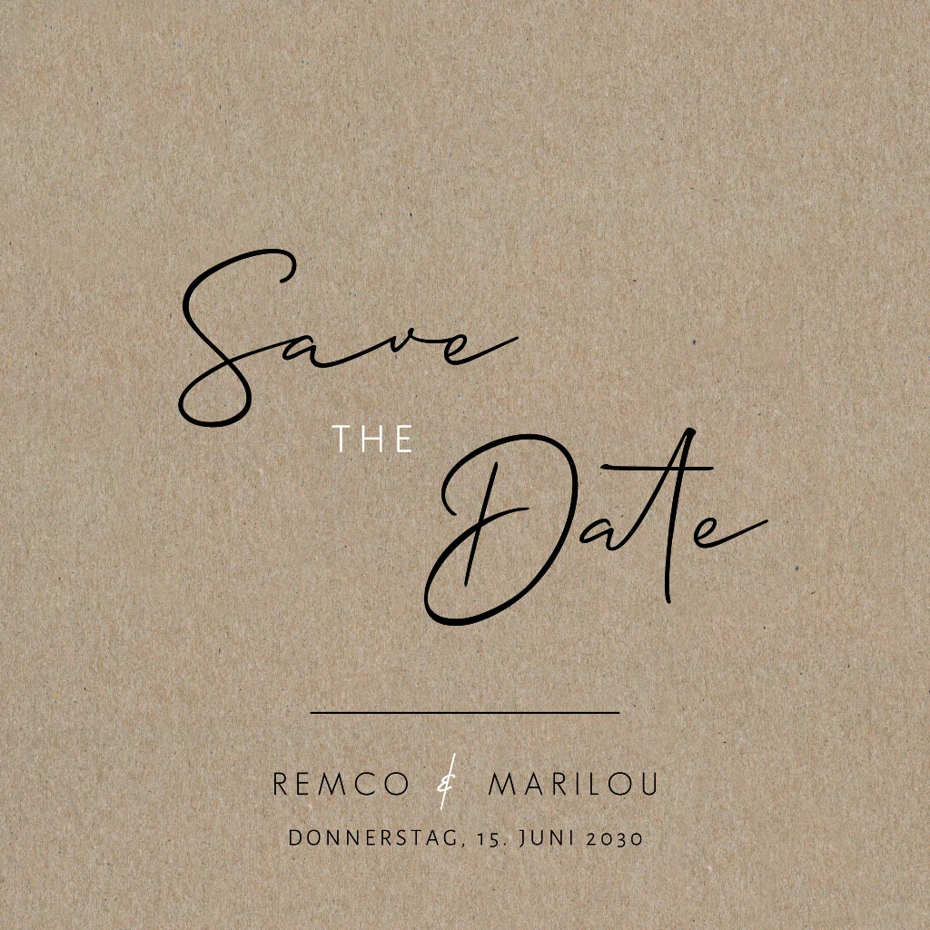 Der Termin für eure Hochzeit steht? Herzlichen Glückwunsch! Damit auch alle eure lieben Freunde und Verwandten an eurem großen Tag teilhaben können, solltet ihr so früh wie möglich Save-the-Date Karten versenden. Das kann ruhig ein Jahr oder noch länger vor der Hochzeit sein! Karten auf Vintage Kraftpapier bestechen durch einen trendigen Designkarton im rustic Kraftpapier-Look und sind mit modernen Schriftzügen bestückt absolut im Trend. Beide Seiten bieten genug Platz für alle persönlichen Einladungsworte und die ersten Infos. Gut zu wissen:Bei quadratische Karten fällt ggf. ein anderes Briefporto an. Alle Infos findest du auf der Website der Deutschen Post. Zu diesem Format erhältst du Umschläge in der Größe 14x12,5 cm. Format ändern ist möglich.