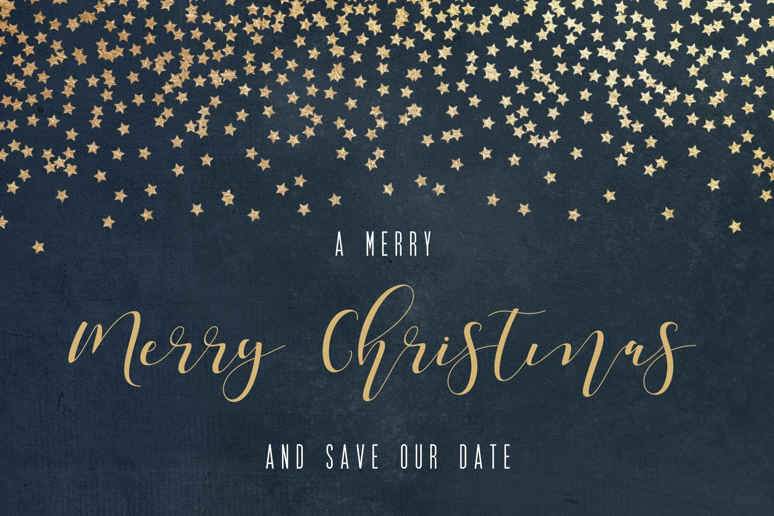 Weihnachtliche Save the Date-Karte in Blau mit Sternen