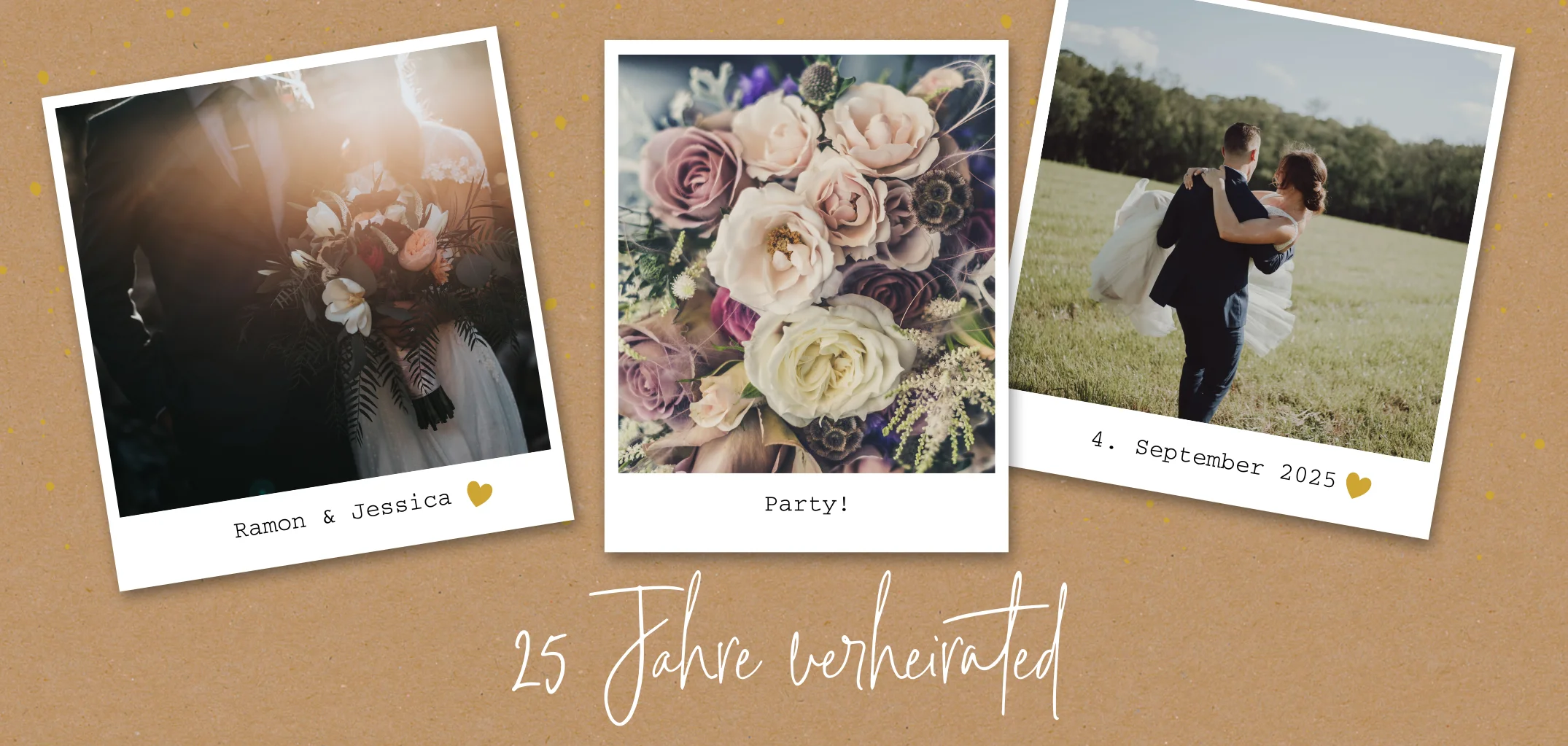 Einladung zur Silberhochzeit im Panoramalook mit Polaroids
