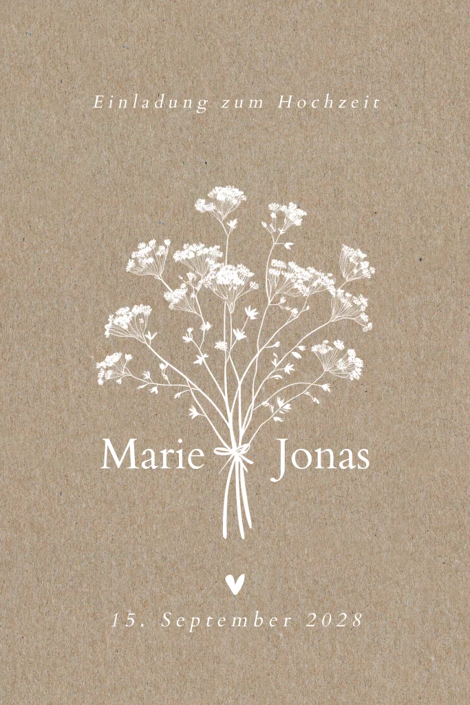 Kraft-Look Hochzeitskarte - einfaches Hochformat