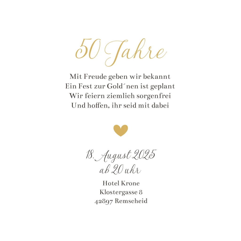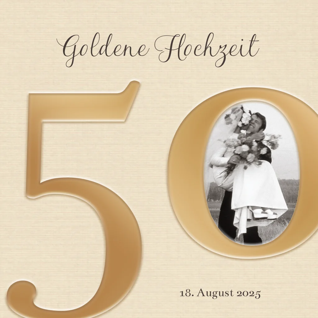 Karte zur Goldenen Hochzeit mit Foto und Leinenpapier-Look