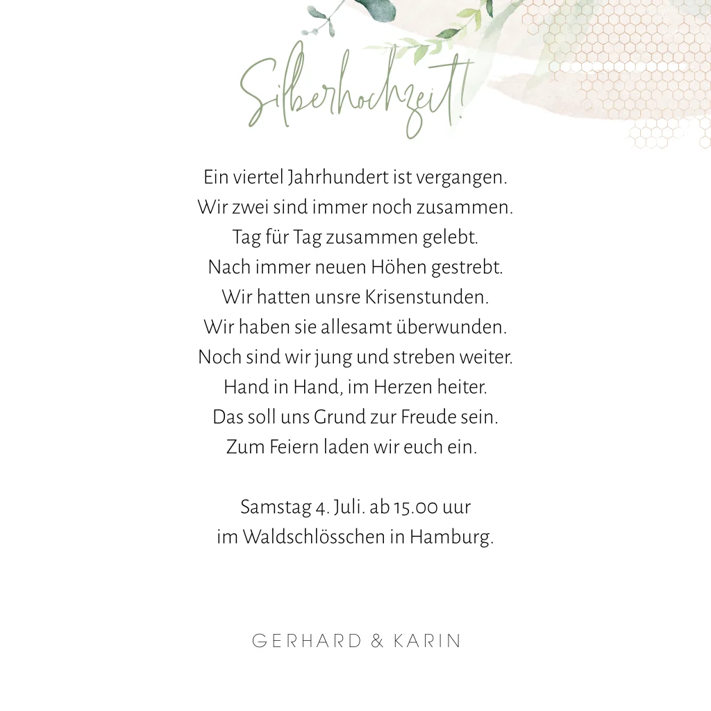 Einladung zur Silberhochzeit mit Eukalyptusblättern