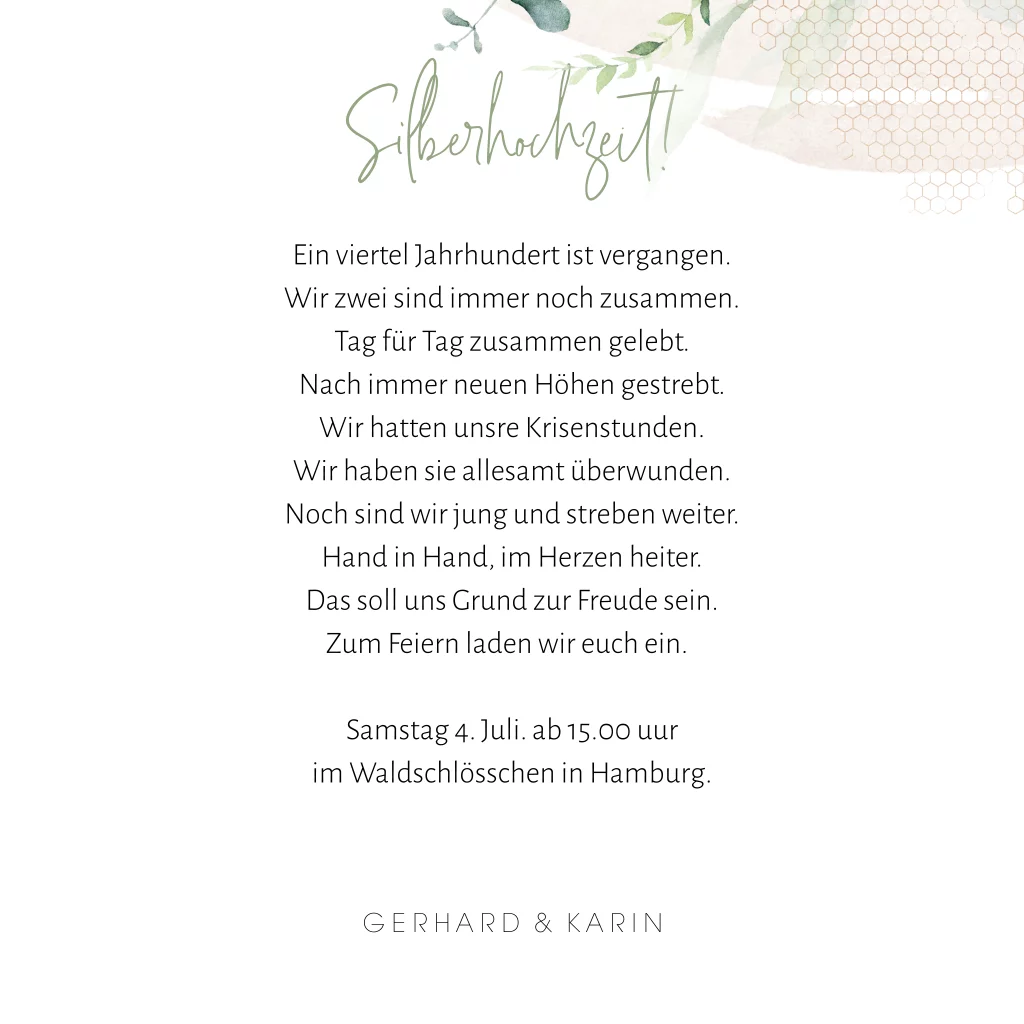 Das Design der von dir gewählten Karte wurde automatisch in andere Formate umgestellt. Wähle einfach deinen Wunschformat aus und platziere alle Texte und Elemente an der richtigen Stelle im Editor. Du hast Fragen oder dein Favorit steht nicht zur Auswahl? Dann kontaktiere uns bitte und wir werden uns gemeinsam darum kümmern!