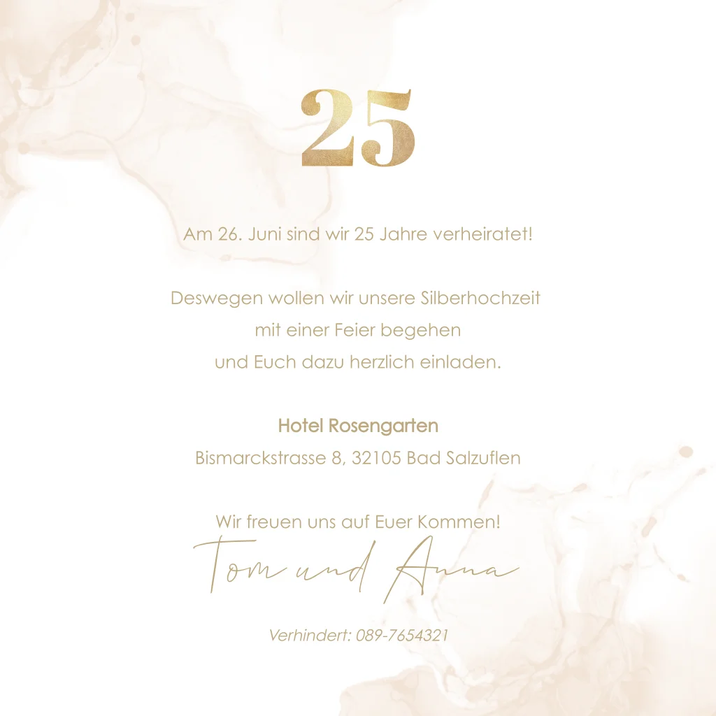 Einladung Silberhochzeit mit Fotos damals und heute und Wasserfarbe