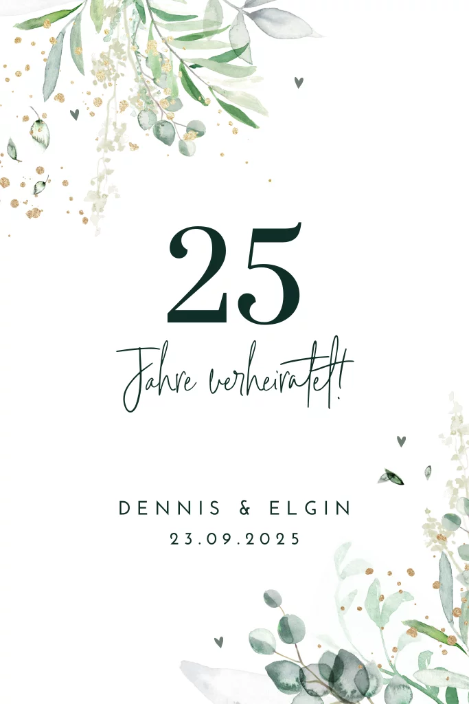 Einladung zur Silberhochzeit mit grünen Zweigen