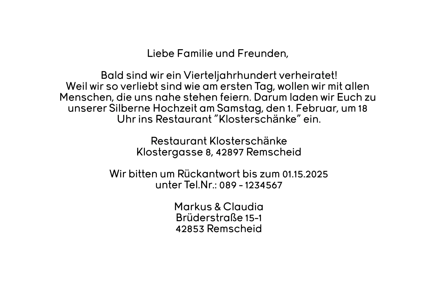 Einladung zum 25. Hochzeitstag mit großem Foto als Hintergrund