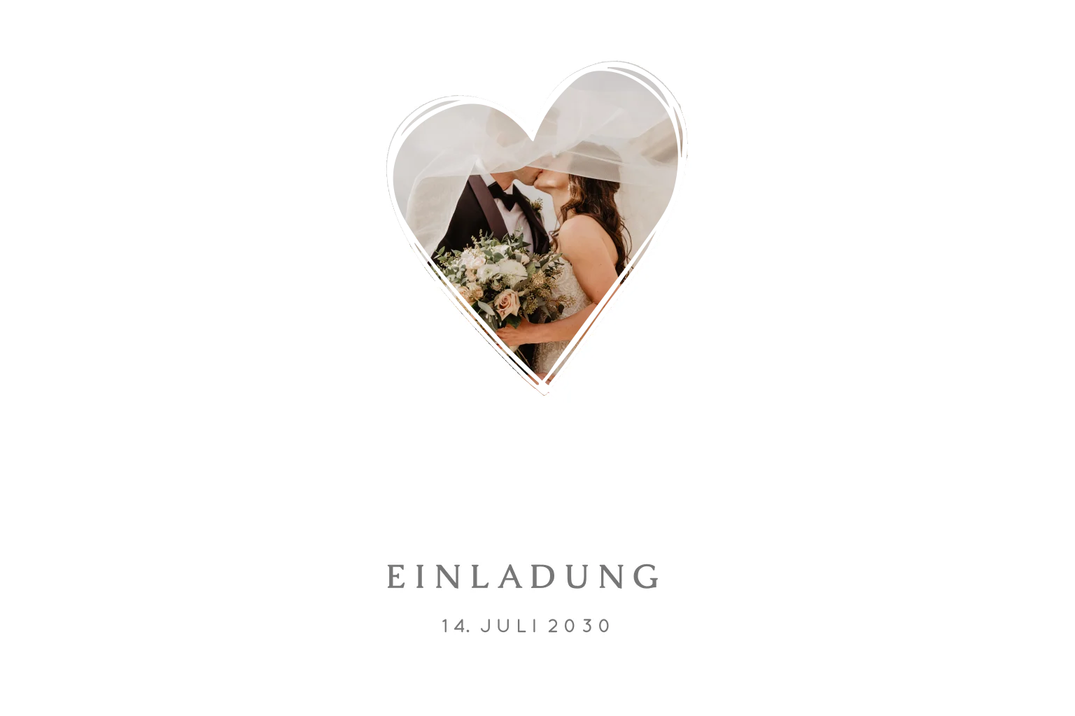Einladung zur silbernen Hochzeit mit Foto in Herz und Silberfolie