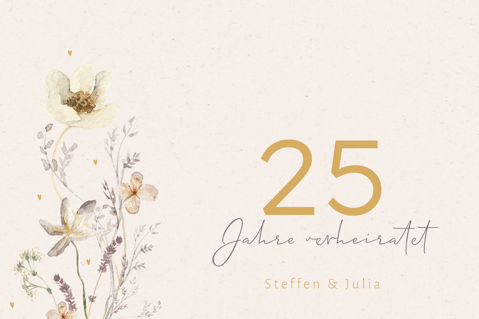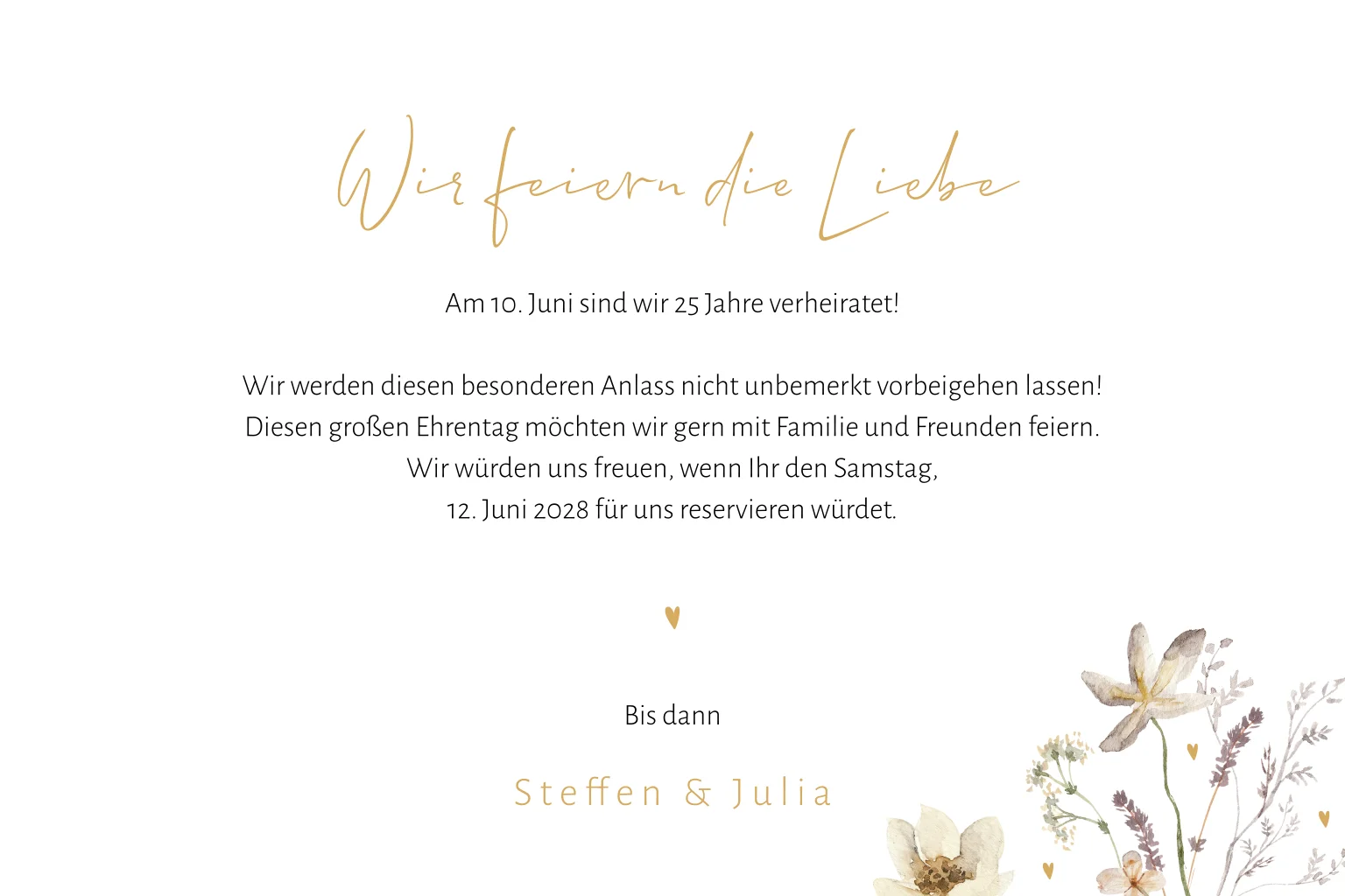 Florale Einladung zur Silberhochzeit mit Herzen und Feldblumen