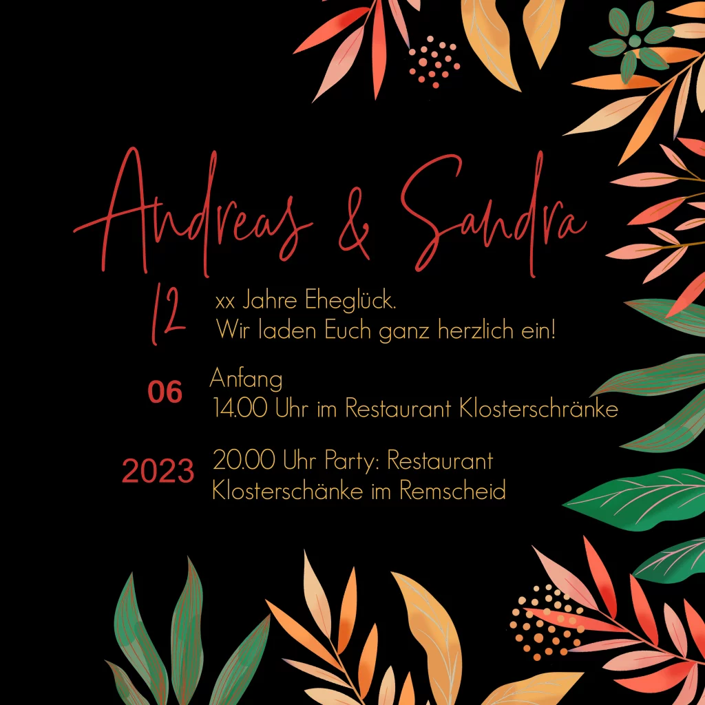 Jubiläumskarte mit orangenen Blättern und Blüten