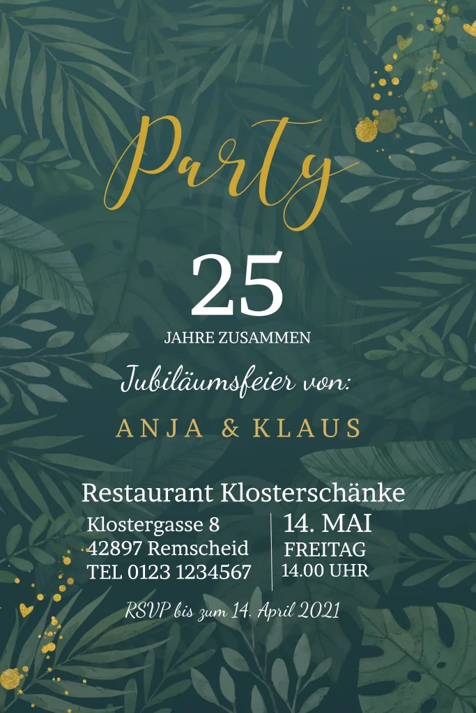 Das Design der von dir gewählten Karte wurde automatisch in andere Formate umgestellt. Wähle einfach deinen Wunschformat aus und platziere alle Texte und Elemente an der richtigen Stelle im Editor. Du hast Fragen oder dein Favorit steht nicht zur Auswahl? Dann kontaktiere uns bitte und wir werden uns gemeinsam darum kümmern!