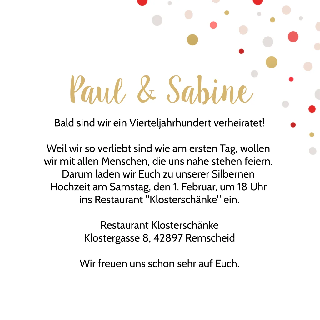 Lustige Einladung zum 25-jährigen Jubiläum mit rotem Van und Konfetti