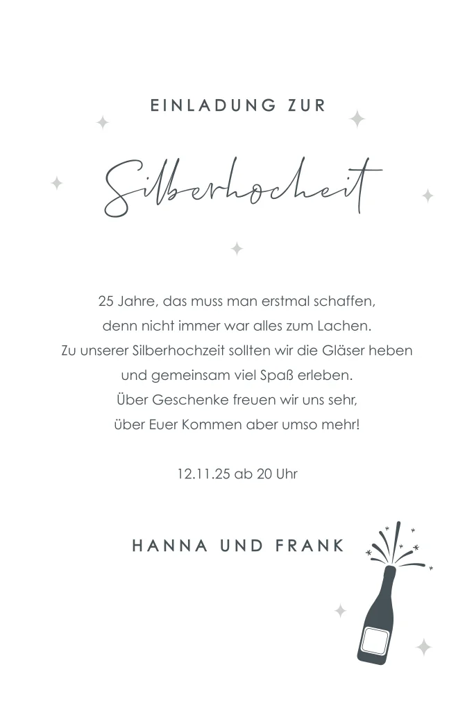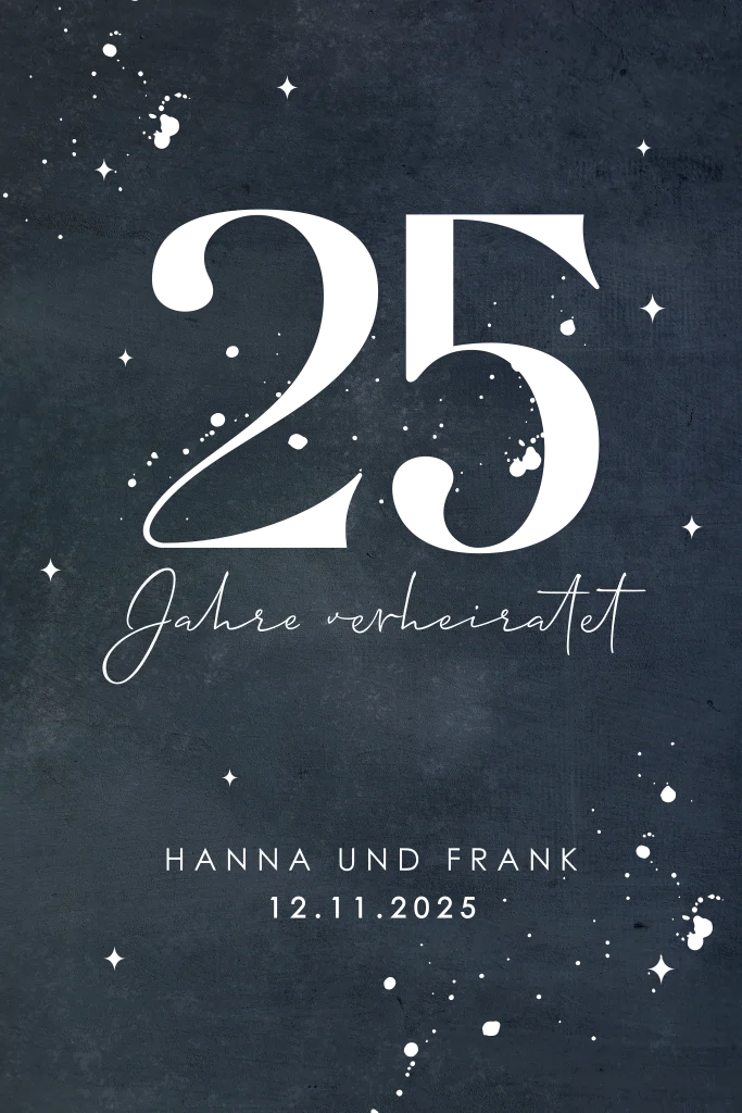 Moderne Einladung zur Silberhochzeit in Dunkelblau/Silber