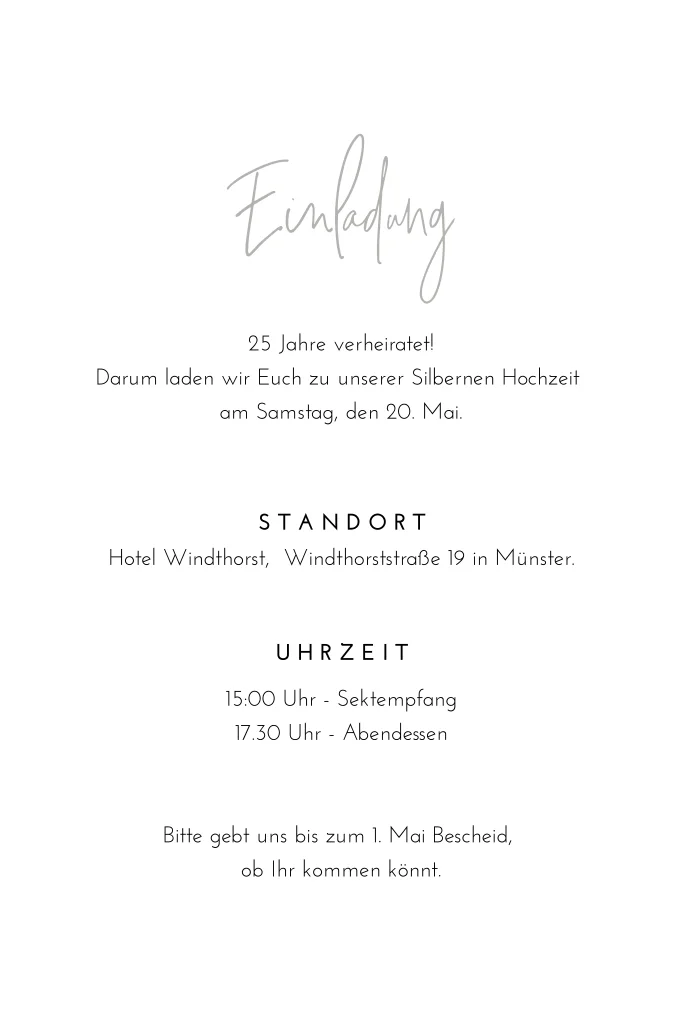 Das Design der von dir gewählten Karte wurde automatisch in andere Formate umgestellt. Wähle einfach deinen Wunschformat aus und platziere alle Texte und Elemente an der richtigen Stelle im Editor. Du hast Fragen oder dein Favorit steht nicht zur Auswahl? Dann kontaktiere uns bitte und wir werden uns gemeinsam darum kümmern!