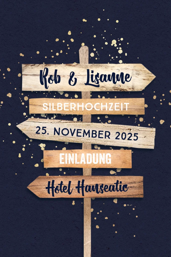 Originelle Einladung zur Silberhochzeit mit Wegweiser