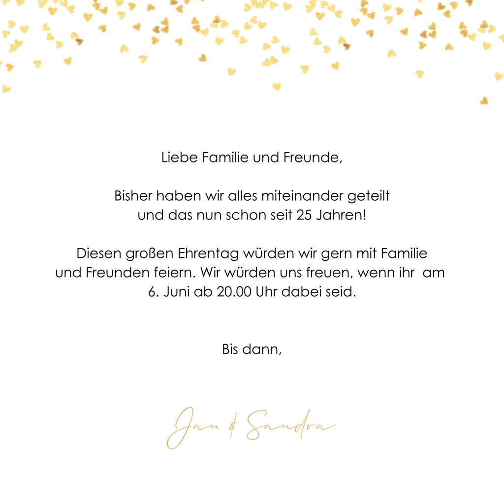Romantische Einladung zur Silberhochzeit mit eigenem Foto und Herzen.