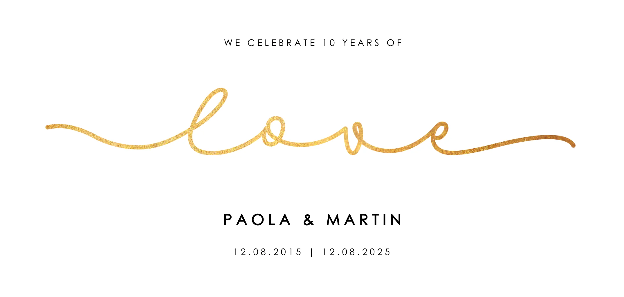 Romantische EInladung zur Silberhochzeit mit goldener Love-Abbildung