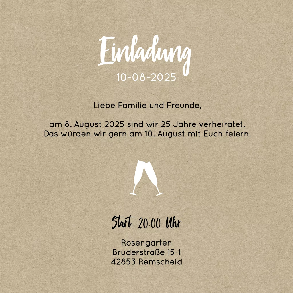 Das Design der von dir gewählten Karte wurde automatisch in andere Formate umgestellt. Wähle einfach deinen Wunschformat aus und platziere alle Texte und Elemente an der richtigen Stelle im Editor. Du hast Fragen oder dein Favorit steht nicht zur Auswahl? Dann kontaktiere uns bitte und wir werden uns gemeinsam darum kümmern!