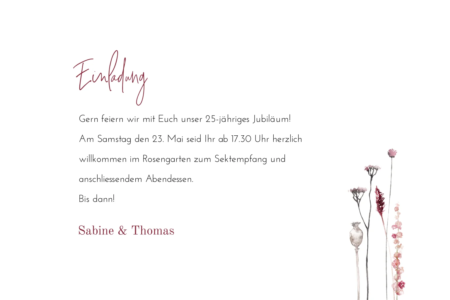 Stilvolle Einladung zur Silberhochzeit mit Blumendesign, Silberfolie