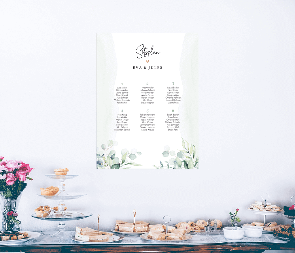 Hochzeit Sitzplan poster mit Zweigen und Herz