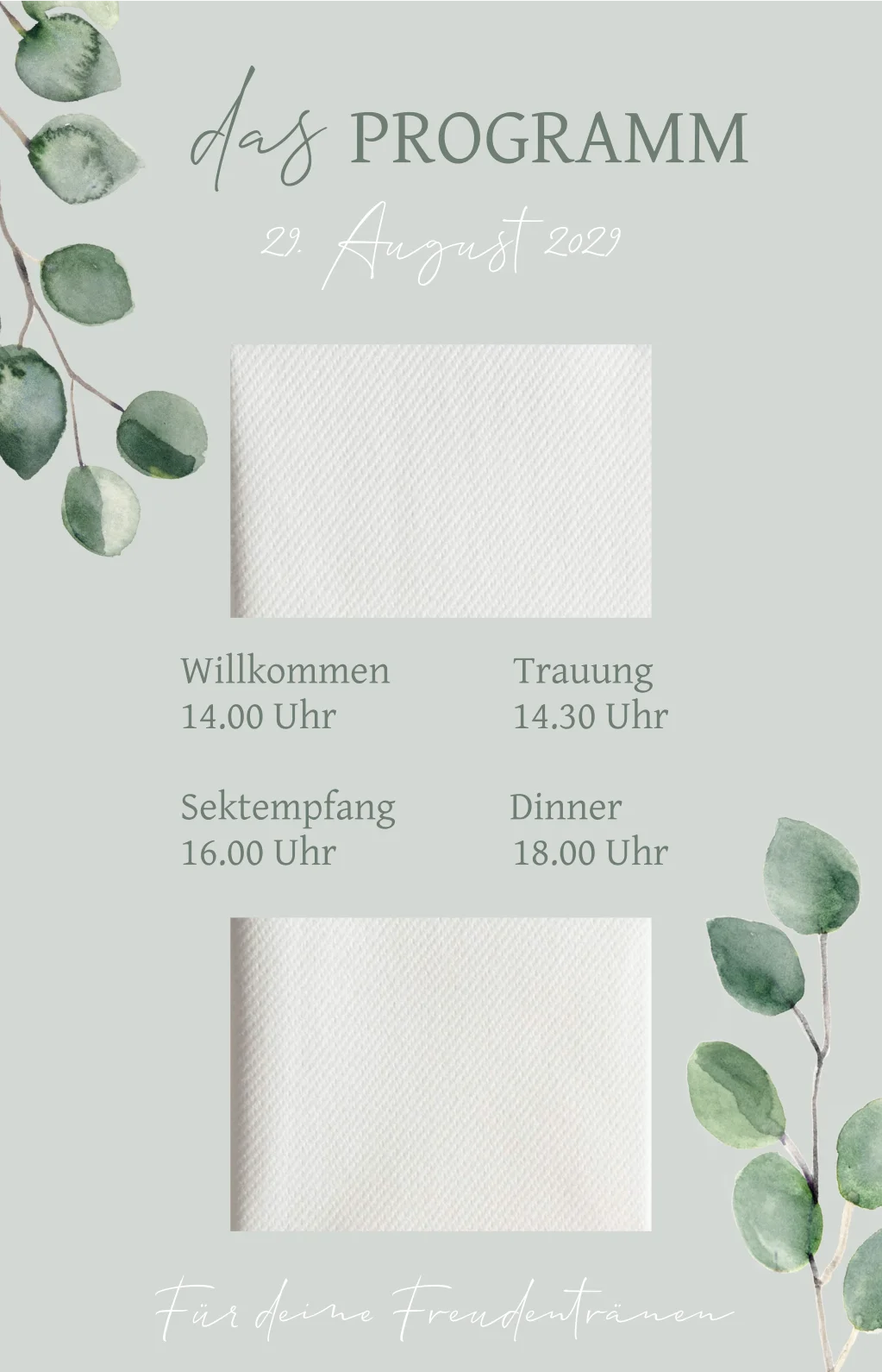 So originell: Überrasche deine Gäste und verteile diese Freudentränen-Einsteckkarten. Du kannst die Kärtchen auf den Stühlen für die Trauung platzieren oder als Tagesprogramm-Kärtchen verwenden und zu Beginn des Tages verteilen.