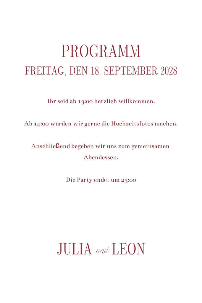 Das Design der von dir gewählten Karte wurde automatisch in andere Formate umgestellt. Wähle einfach deinen Wunschformat aus und platziere alle Texte und Elemente an der richtigen Stelle im Editor. Du hast Fragen oder dein Favorit steht nicht zur Auswahl? Dann kontaktiere uns bitte und wir werden uns gemeinsam darum kümmern!
