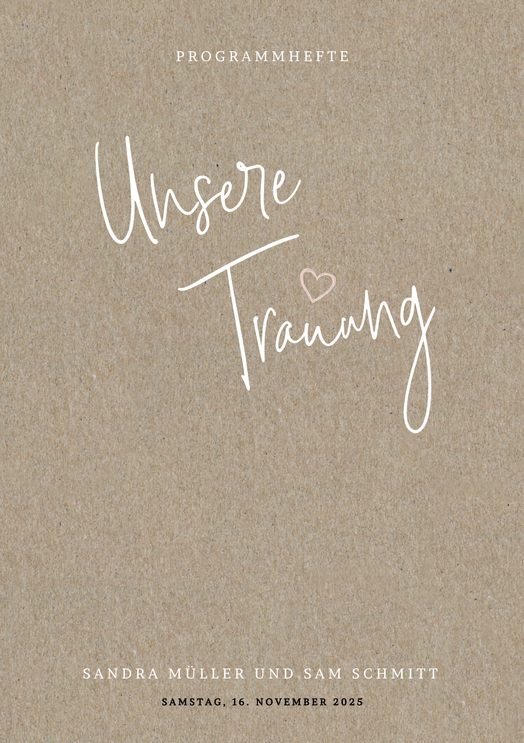 Das Heft wird durch zwei Heftklammern stabil zusammengehalten und kann sowohl auf Papier mit matter Oberfläche (Holzfreies Papier 170g/m²) als auch auf Papier mit glattem, leicht glänzendem Papier (Seidenglanz 170g/m²) gedruckt werden. Du kannst dabei zwischen einem 8- als auch einem 12-seitigen Kirchenheft aus unserem Sortiment wählen. Diese Version hier hat 8 Seiten; wenn du lieber 12 Seiten möchtest, kontaktiere uns bitte dahingehend.
