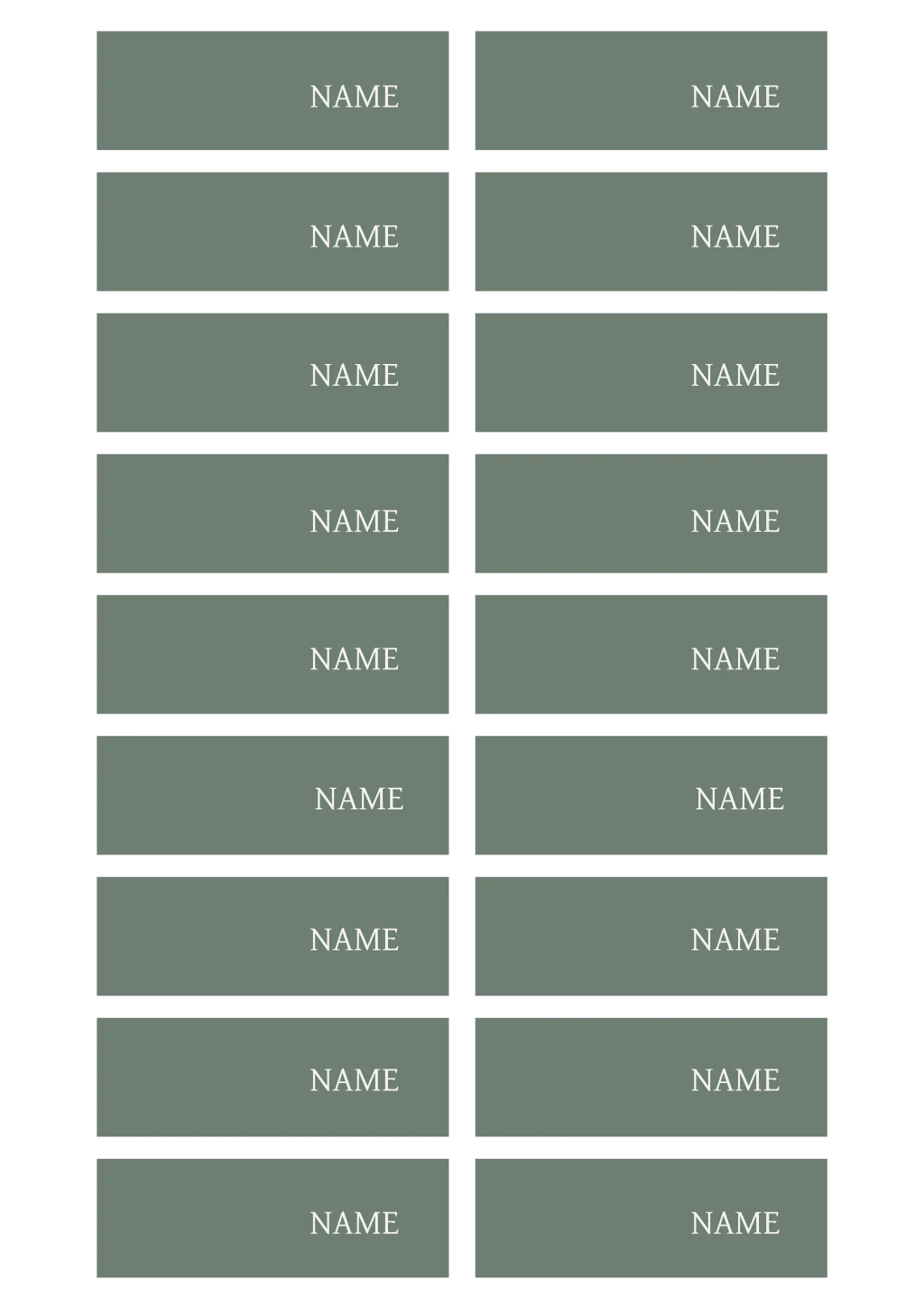 Lange Namenskarten in Grün mit weißer Schrift und optionaler Menükarte