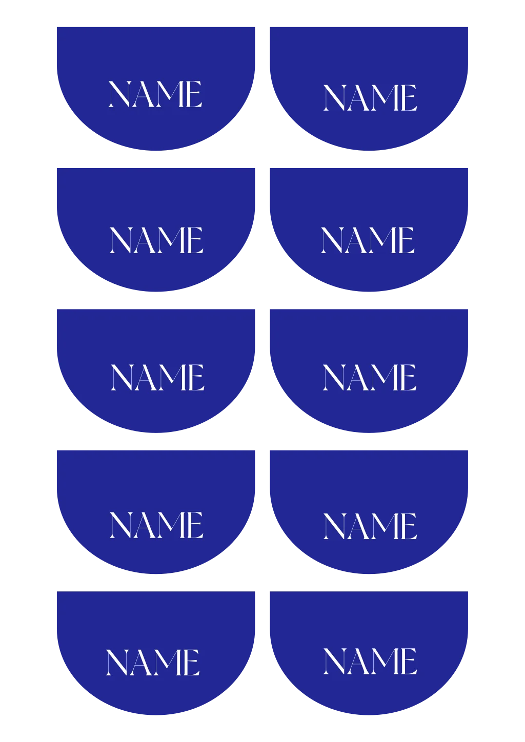 Namenskarten Blau in Bogenform mit optionaler Menükarte