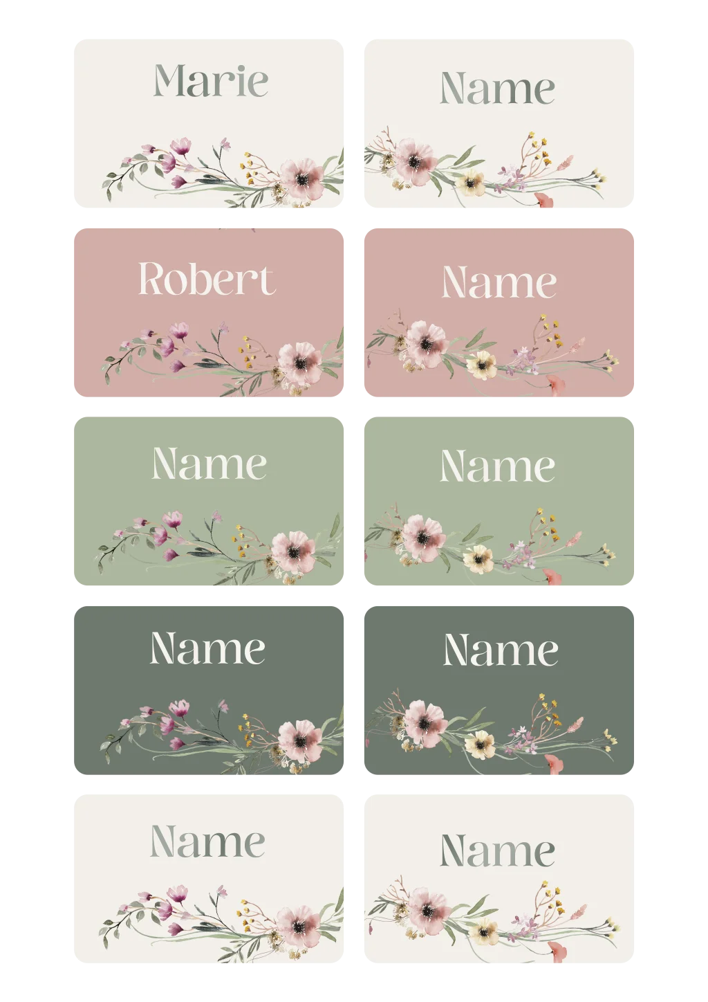 Namenskarten mit elegantem Blumenmuster in verschieden Farben