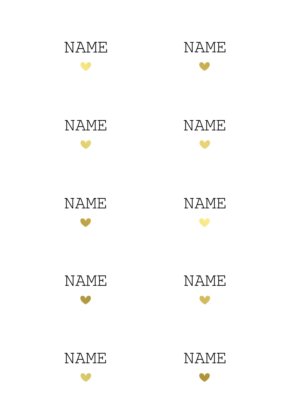 Namenskarten mit goldenen Herzen