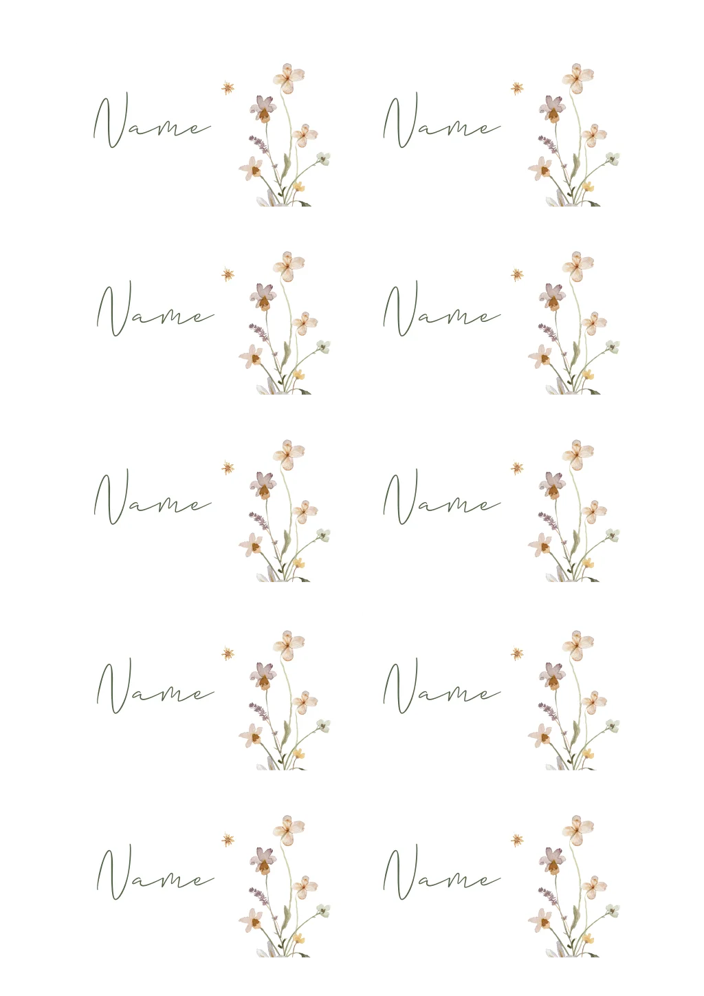 Namenskarten im Sandton mit Wildblumen