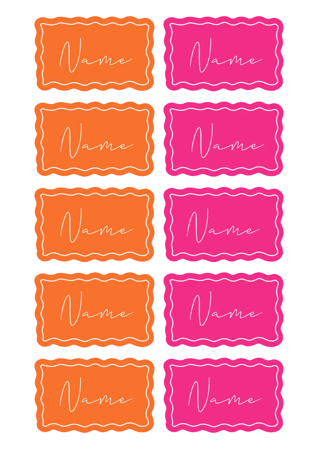 Sommerliche Namenskarten mit welligem Rand und Rahmen | 5x8 CM