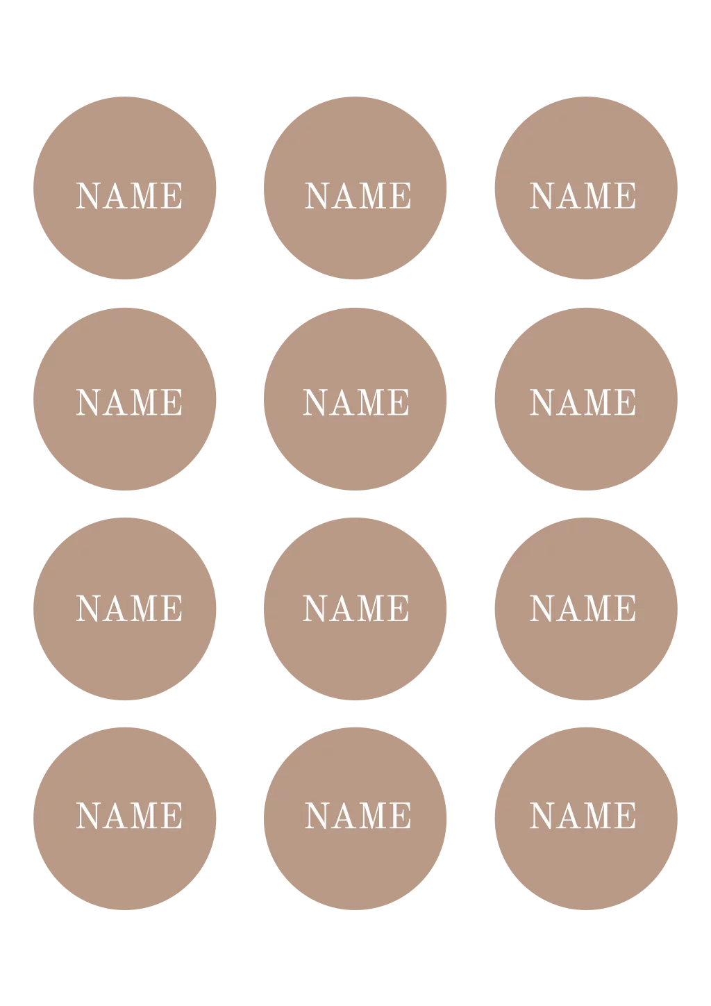 Schlichte Namenskarten in elegantem Braun - 12 Stück ø 8 cm.Melde dich für unseren Newsletter an und profitiere von exklusiven Angeboten, kreativen Ideen und Neuigkeiten aus unserer Produktwelt. Als Dankeschön für deine Anmeldung schenken wir dir einen kostenlosen Probedruck deiner Karte.