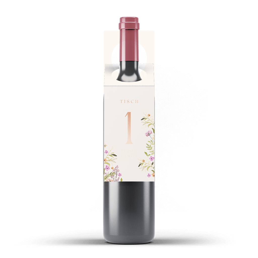 Was für eine schöne Art, deine Gäste zum richtigen Tisch zu führen. Du hängst den Flaschenhänger einfach an den Hals einer Flasche, zum Beispiel einer Weinflasche. Das Design dieses Produkts lässt sich ganz einfach im Online-Editor anpassen.