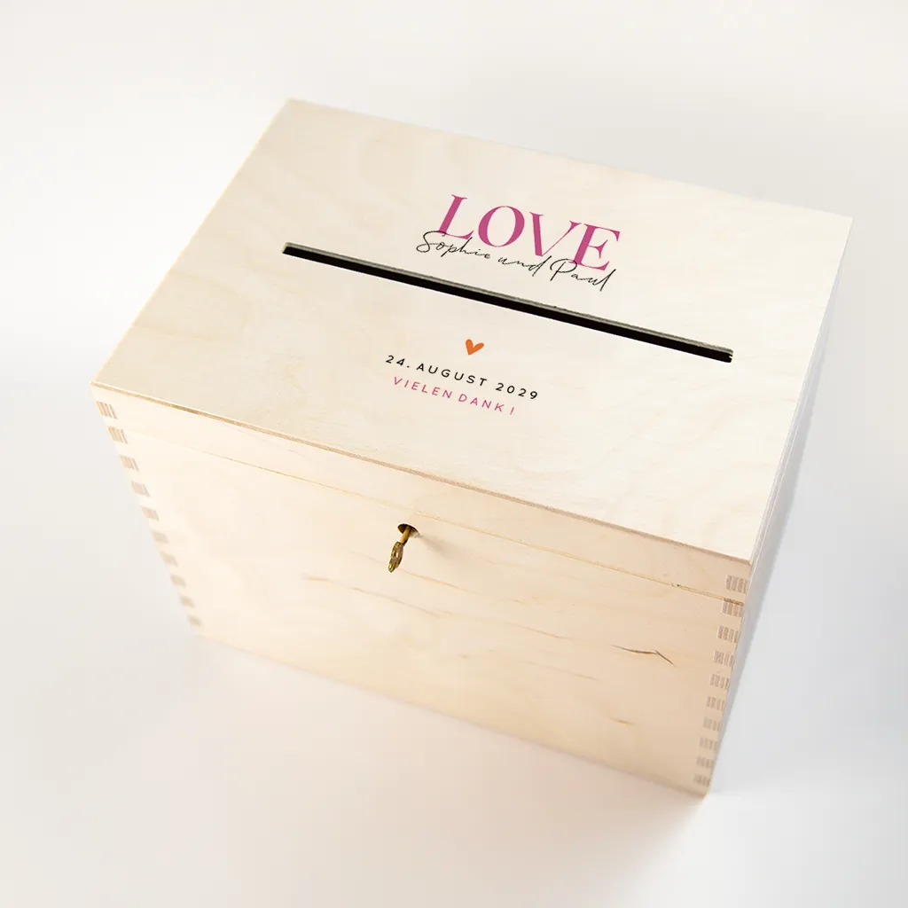 In beiden Versionen wird der Vollfarbdruck nur auf der Oberseite der Box aufgebracht. Dank unserer speziellen Drucktechnik mit Deckweiß können wir auch weiße Farben im Design der Holzbox integrieren.