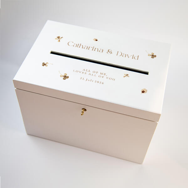 In beiden Versionen wird der Vollfarbdruck nur auf der Oberseite der Box aufgebracht. Dank unserer speziellen Drucktechnik mit Deckweiß können wir auch weiße Farben im Design der Holzbox integrieren.
