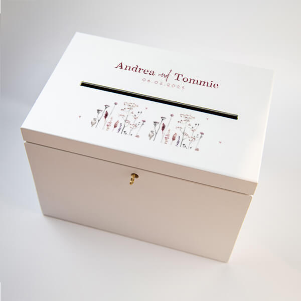 In beiden Versionen wird der Vollfarbdruck nur auf der Oberseite der Box aufgebracht. Dank unserer speziellen Drucktechnik mit Deckweiß können wir auch weiße Farben im Design der Holzbox integrieren.