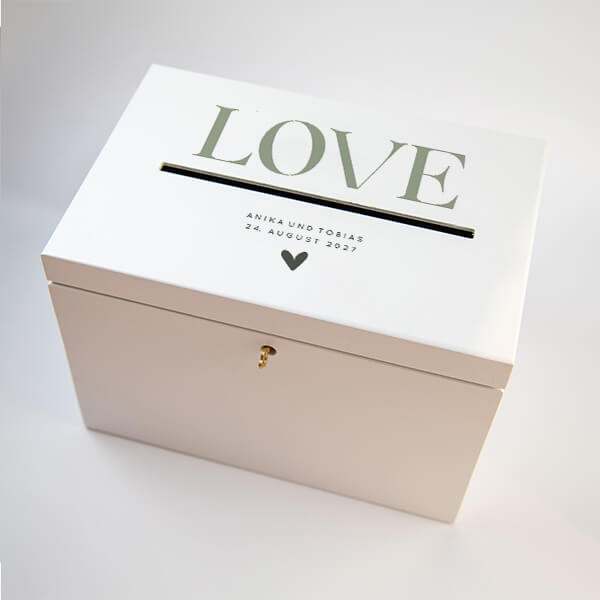 • Briefschlitzgröße bei der weißen Holzkiste ist 9 x 210 mm.