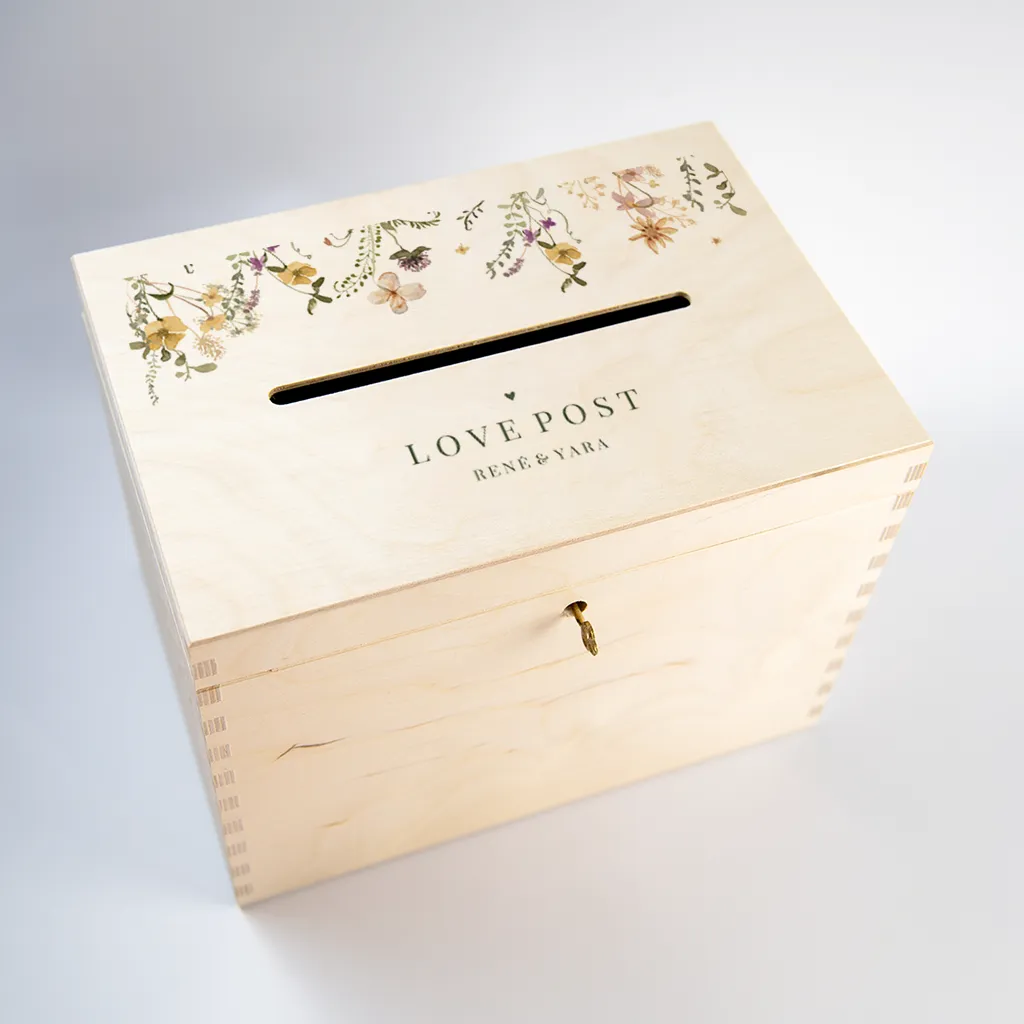 In beiden Versionen wird der Vollfarbdruck nur auf der Oberseite der Box aufgebracht. Dank unserer speziellen Drucktechnik mit Deckweiß können wir auch weiße Farben im Design der Holzbox integrieren.